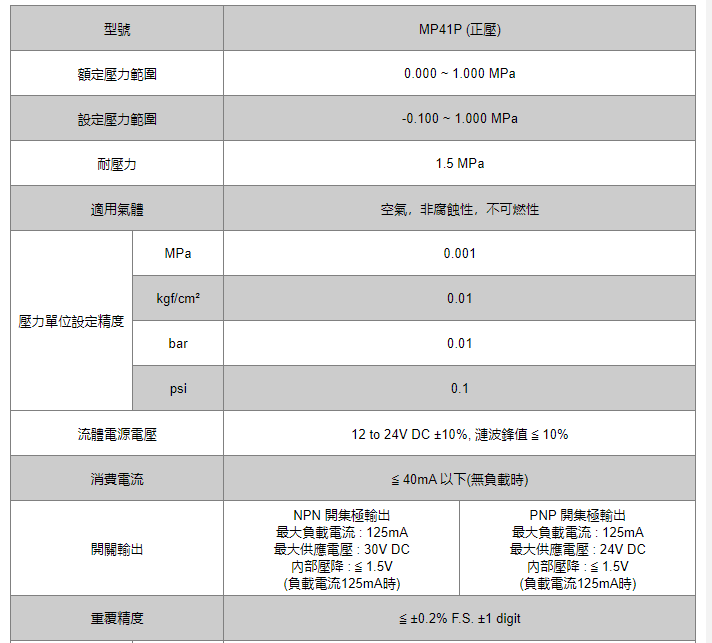 UNIMEC 压力感应开关MP41系列