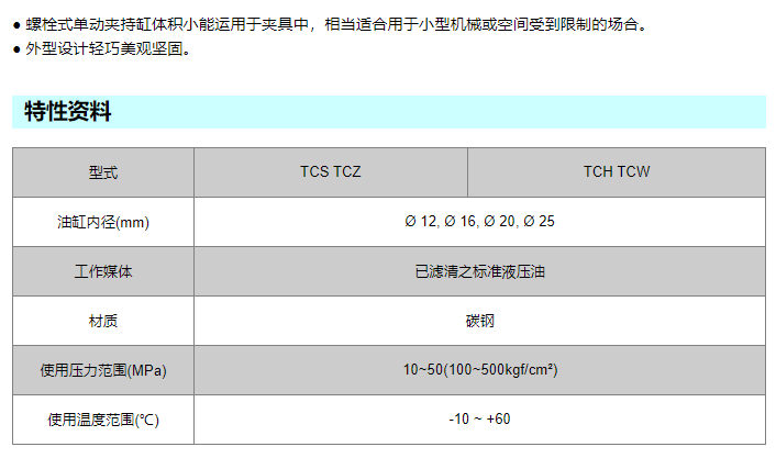 UNIMEC 螺栓式单动夹持缸TCS系列