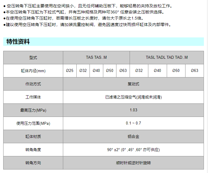 UNIMEC 气压式转角下压缸TAS系列